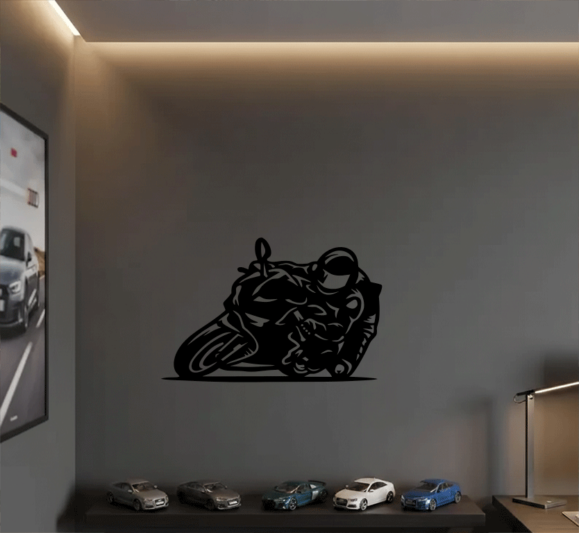 Capture the intensity of the race with this sleek, precision-cut motorcycle wall art. A perfect statement piece for any garage, office, or enthusiast's living space. All of our metal wall art is handcrafted in Austin, Texas.